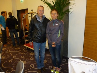 « Quel est le plus beau souvenir de votre carrière sportive ? », avais-je demandé à Agnieszka la veille. Elle avait répondu tout de go : « Düsseldorf ». C’est là qu’en 2011 elle avait établi son « PB » sur marathon en 2:33:48 en terminant troisième. Elle a pourtant déjà remporté les marathons de Poznan (2009), Lodz (2012) et Debno (2013) en Pologne, s’est classée 10ème du Marathon de Berlin en 2010 et 16ème du Marathon de Francfort en 2011. A Cologne, c’était à nouveau le « PB » qui figurait au centre des préoccupations de l’athlète polonaise, la victoire venait en accessit. Le 29 septembre, elle s’était classée, en 1:13:25, quatrième femme au semi-marathon de la Route du Vin au Grand-Duché du Luxembourg. Son objectif pour Cologne était 2 h 30 min.